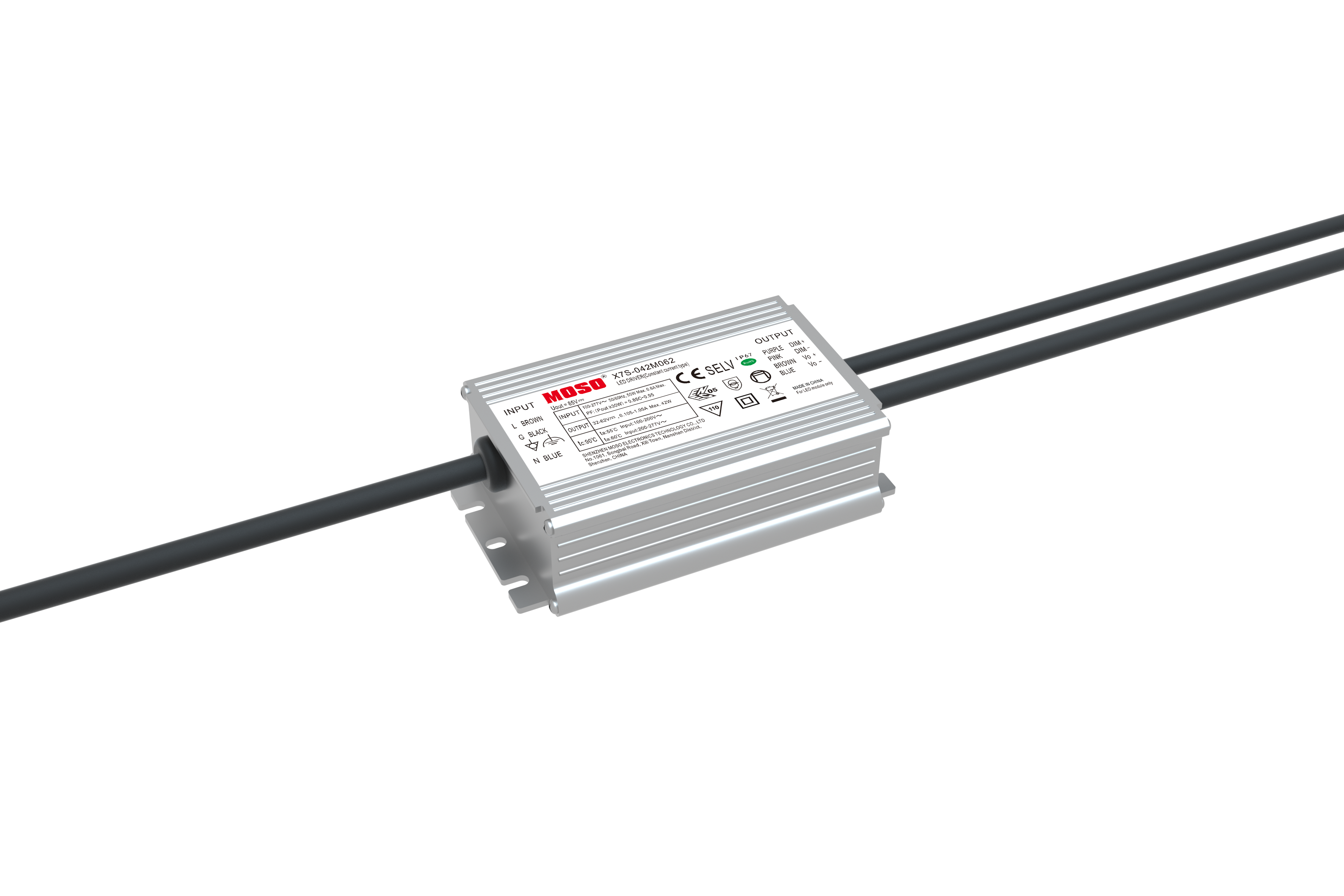 The X6-42W is constant-current output IP67 LED driver that operates from 90-305Vac input with excellent power factor and low THD. It is created for industrial lights, tunnel and street lights. The high efficiency of these drivers and compact metal case enable them to run cooler, significantly improving reliability and extending product life. To ensure trouble-free operation, protection is provided against input surge, output over voltage and short circuit protection.