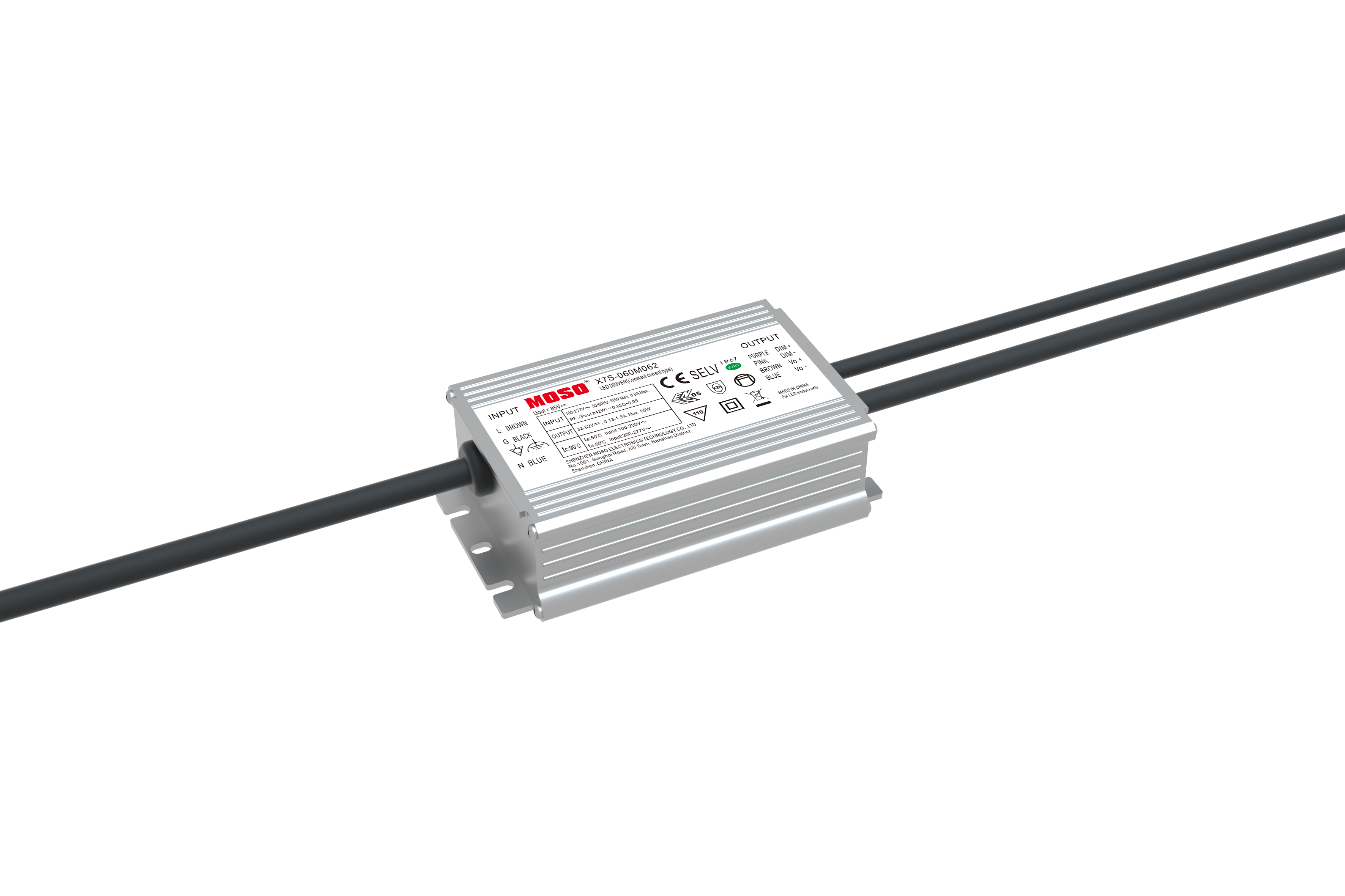 The X6-60W is constant-current output IP67 LED driver that operates from 90-305Vac input with excellent power factor and low THD. It is created for industrial lights, tunnel and street lights. The high efficiency of these drivers and compact metal case enable them to run cooler, significantly improving reliability and extending product life. To ensure trouble-free operation, protection is provided against input surge, output over voltage and short circuit protection.